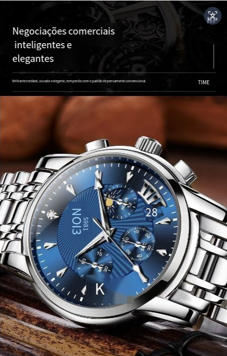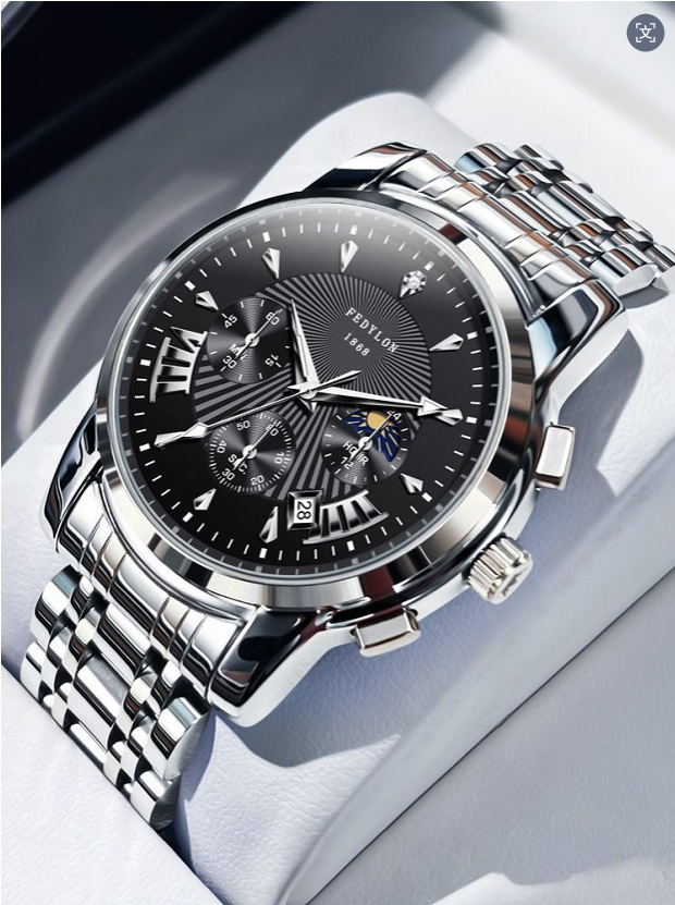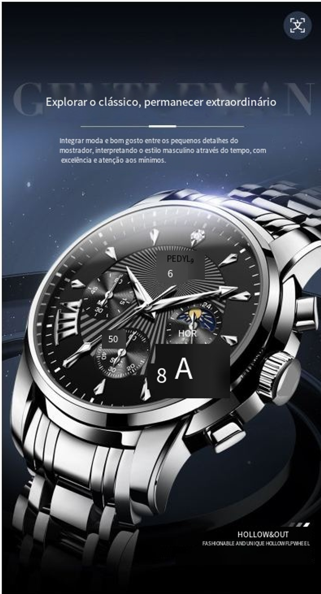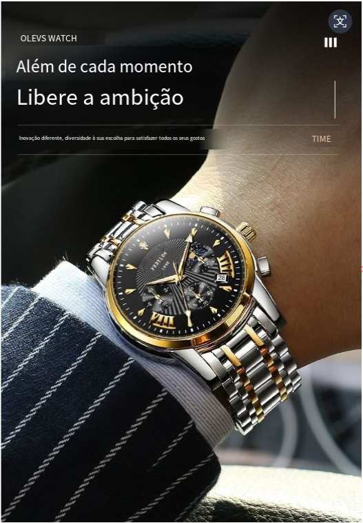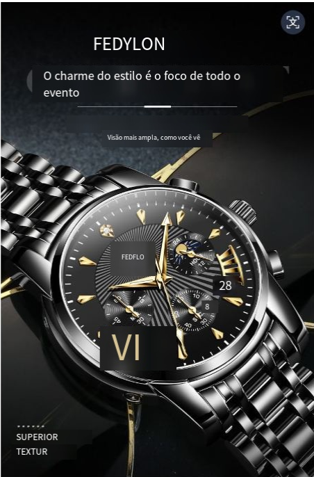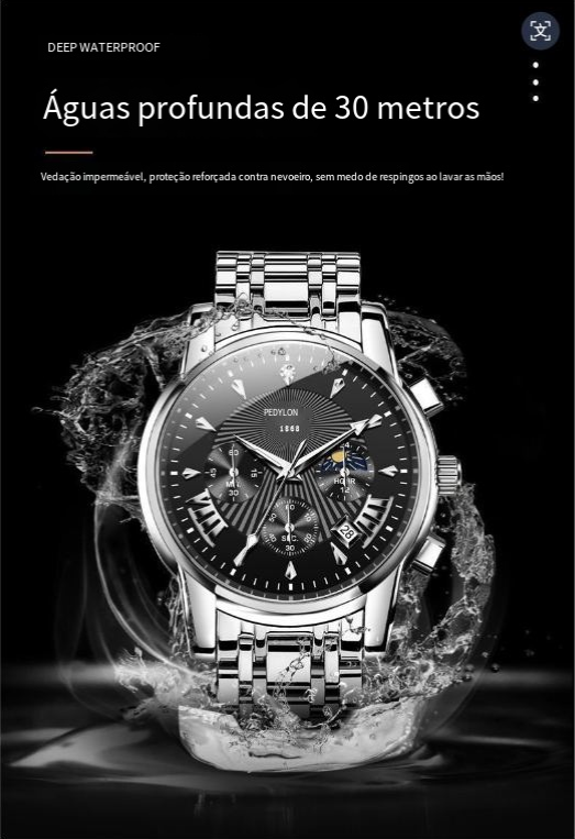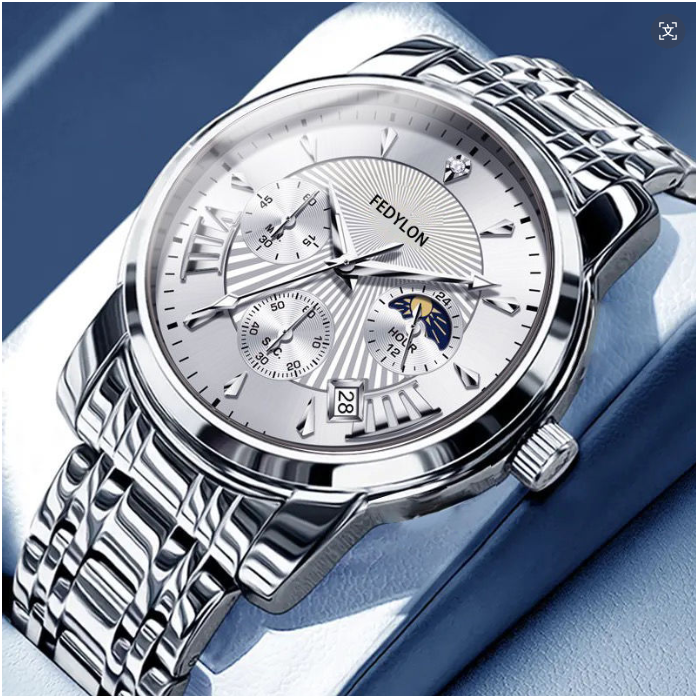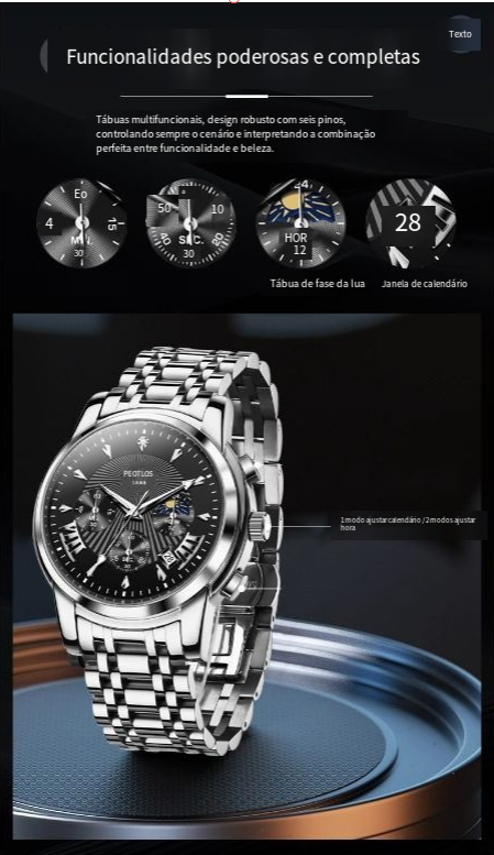 Foti wheel relógios de quartzo para homens, pulseira de aço inoxidável, 30 metros à prova d'água, luxo design local de trabalho duplo uso diário