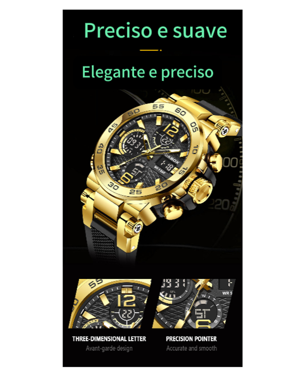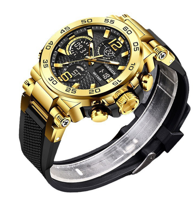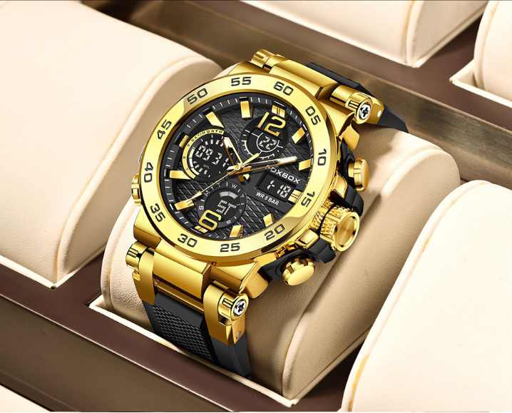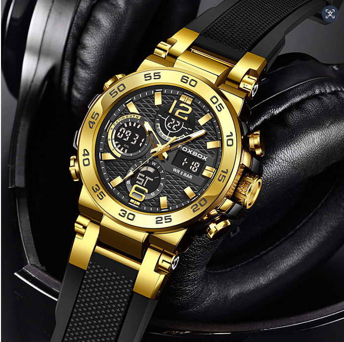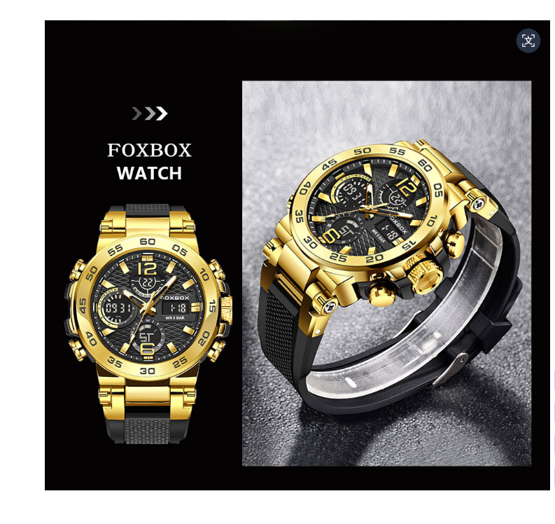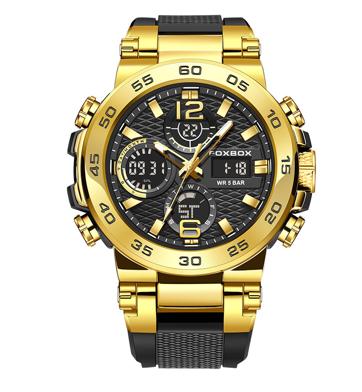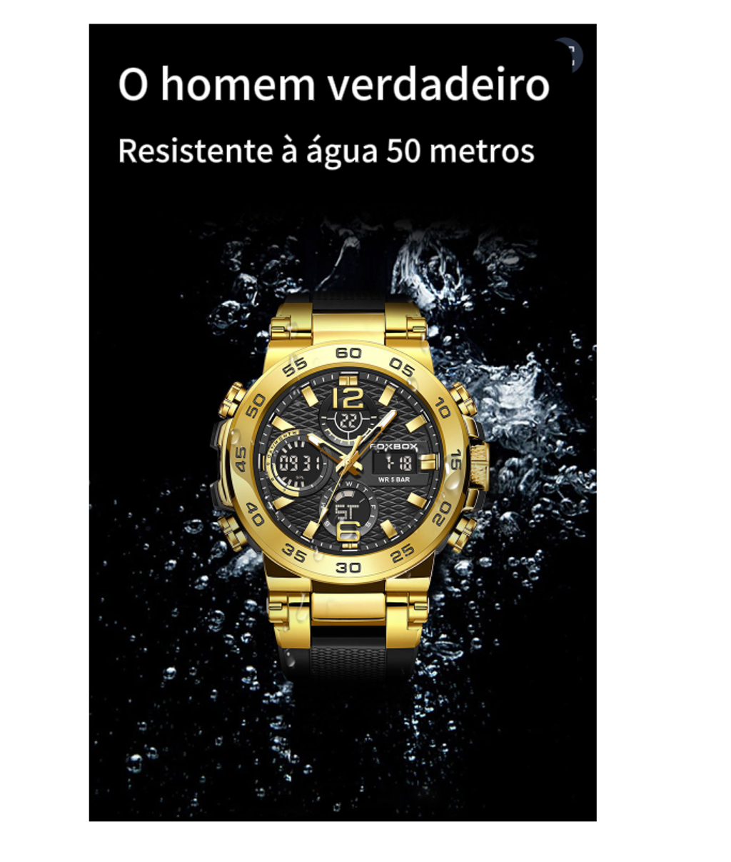 FOXBOX homens negócios casual dual display relógio eletrônico multifuncional impermeável relógio luminoso