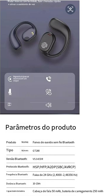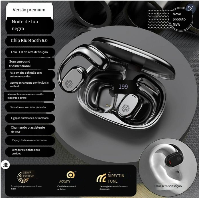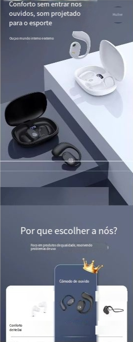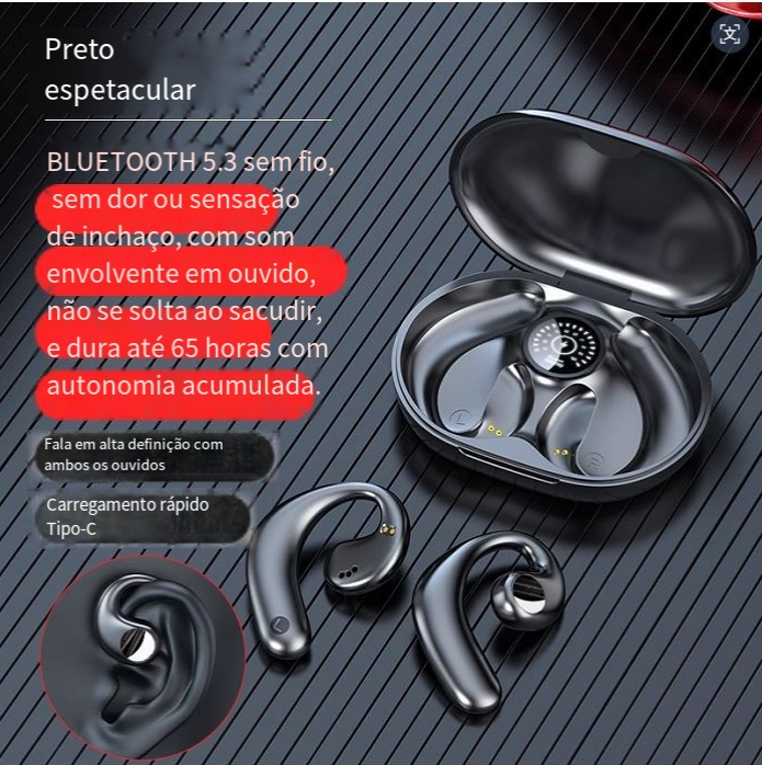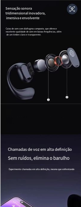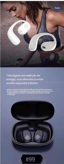 Sem fone de ouvido de condução óssea na orelha por muito tempo com indolor e livre desgaste insensível impermeável à prova de suor de grande capacidade super longo standby som surround tridimensional
