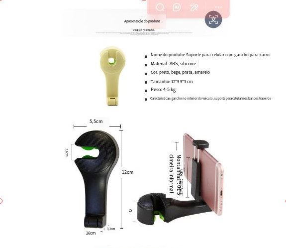 Carro carro gancho telefone suporte para carro assento para trás pequeno multifuncional